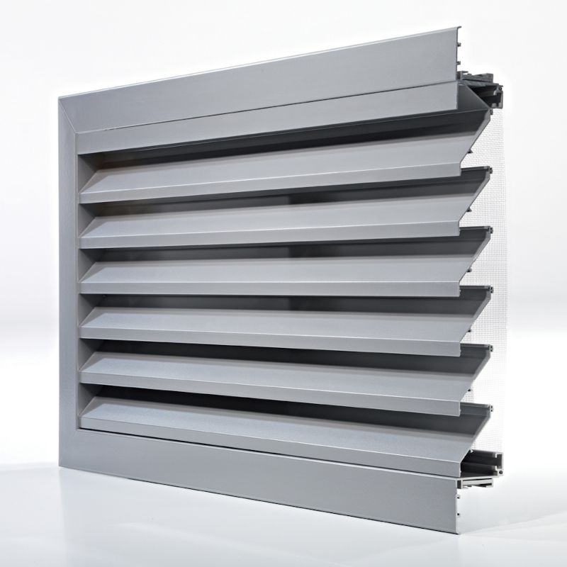 The system uses spacer sections for easy stacking, quick assembly, and adjustable blade pitch to match blade numbers to panel height. It is ideal for plant rooms or any space needing ventilation, including curtain walls. Bird and insect meshes can be incorporated if necessary.